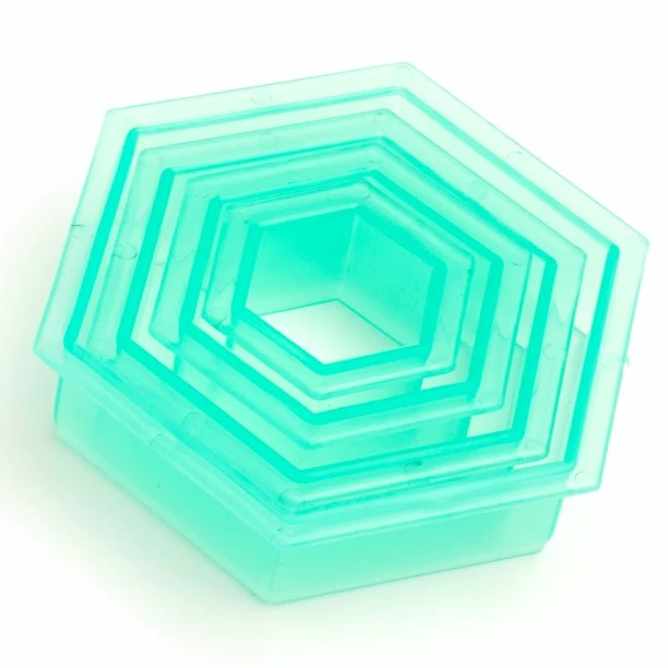 Sweet Sugarbelle nesting cookie cutters are some of the most versatile shapes in a variety of sizes. These staple cutter shapes are easy to use for any occasion and are ones that all bakers should have. This package includes 4 plastic nesting cookie cutters in a hexagon shape..
