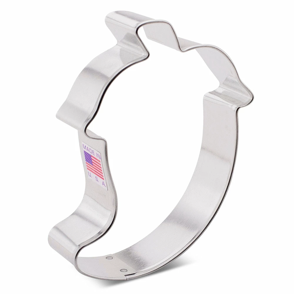 You can create beautiful cookies in your own kitchen. This high quality tin cookie cutter is made in the USA. Size 4″.Â