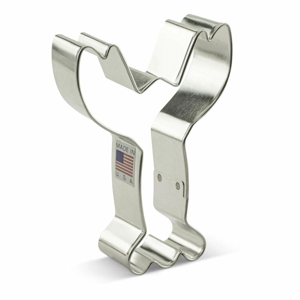 You can create beautiful cookies in your own kitchen. This high quality tin cookie cutter is made in the USA. Size 4″ x 2 3/4″.