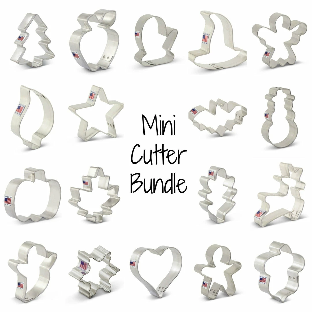 The best of Ann Clark’s cutters are now available as MINIS!! The set includes 18 mini cutters: Christmas Tree, Cute Apple, Mitten, Witch’s Hat, Angel, Teardrop Leaf, Star, Bat, Snowman, Pumpkin, Maple Leaf, Oak Leaf, Reindeer, Ghost, Snowflake, Heart, Gingerbread, and Acorn. Click the photo to enlarge and see cutter options. Cutters are made in the USA