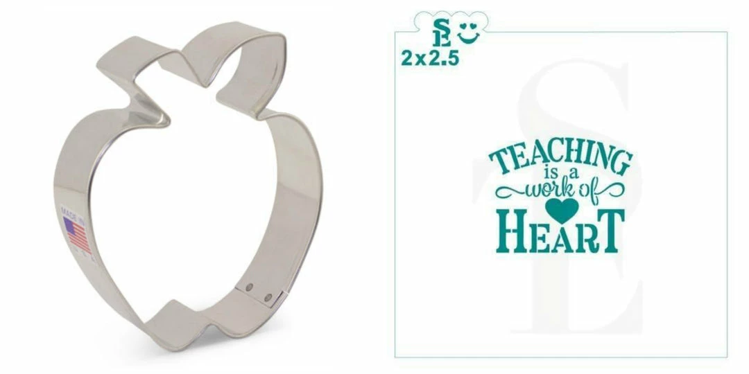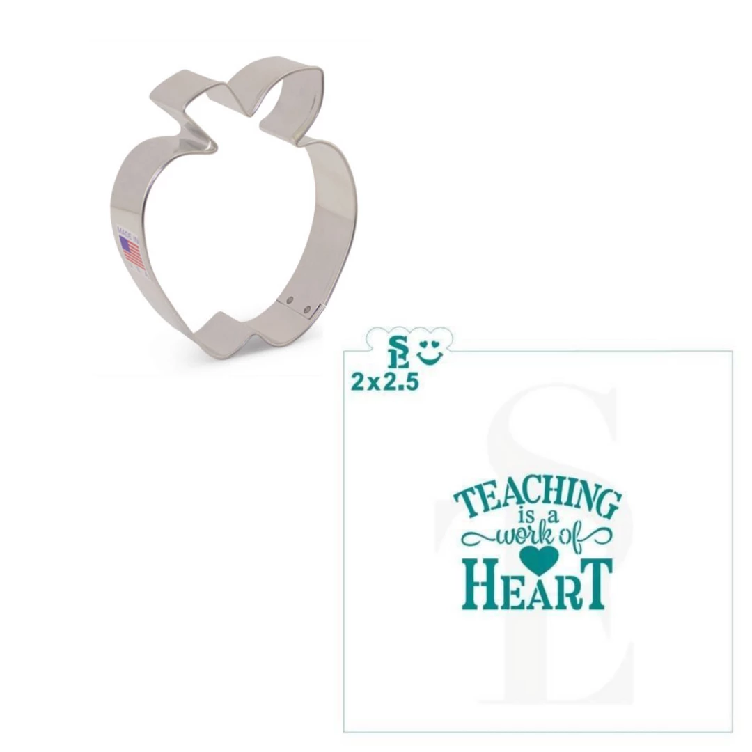 Bundle your savings with this Teacher set. Regularly priced at $7.49, buy as a bundle and pay $6.74! The bundle includes: Teaching is a Work of Heart SE Stencil and Cute Apple Cookie Cutter.