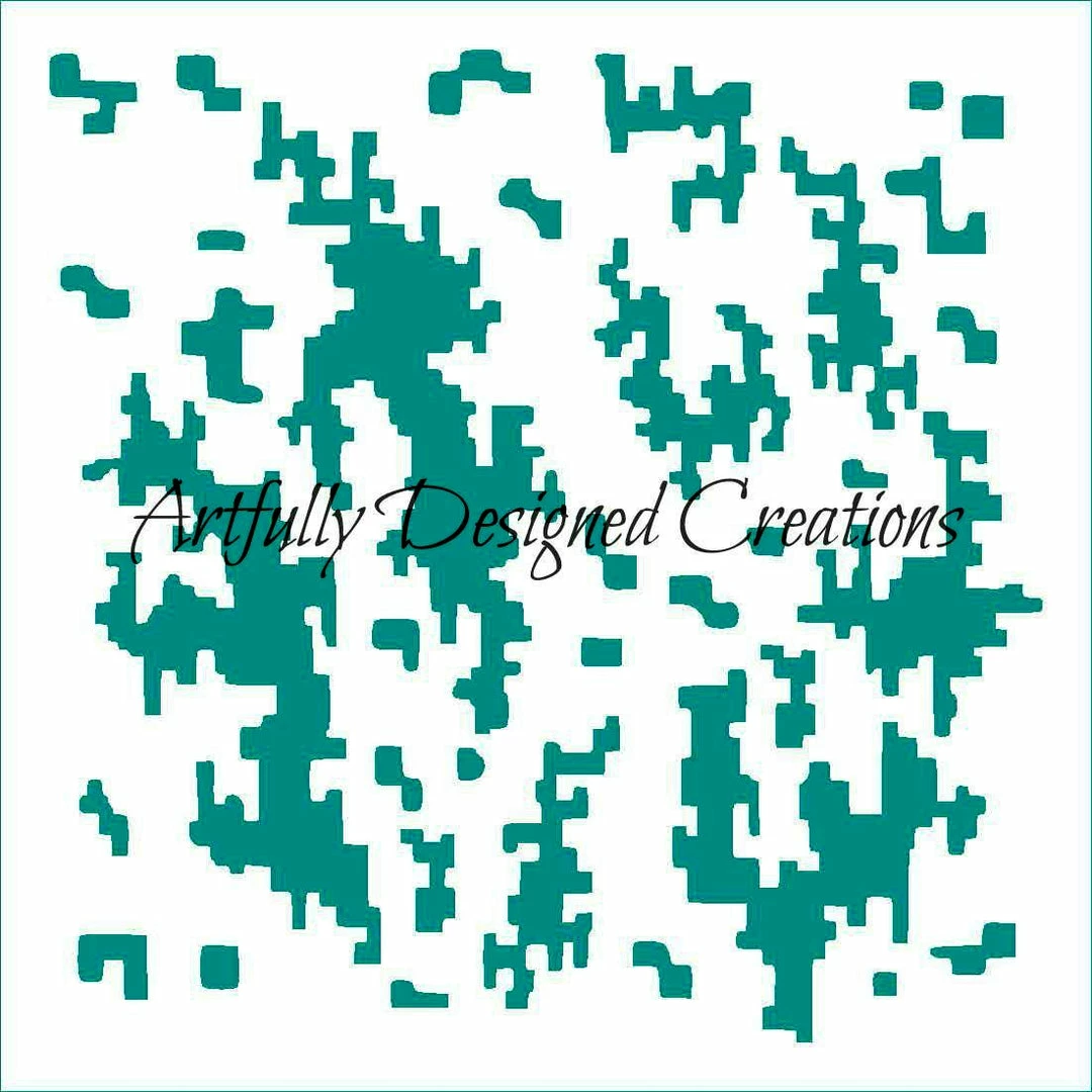 Digital Camo Stencil – Overall stencil size approximately 5.5″ x 5.5″. Blue sections in image are the open sections. Made by Bee Baked Art in the USA. Stencils are 7 mil Food Grade plastic, washable and reusable. To clean your stencil simply run your stencil under warm water to rinse away any air brush color or icing. Pat dry between paper towels or a clean cloth. Can be used with royal icing, air brush, fondant, butter-cream, chocolate or any spreadable material.