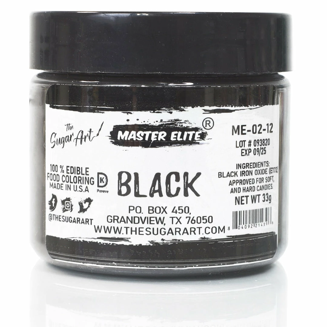 This Black food color you can achieve the truest black. The edible Master Elites are intended to color royal icing, fondant, buttercream, macaron batter, cake batter and more. Keep in mind, Master Elites are not fat soluble and can not color chocolate.