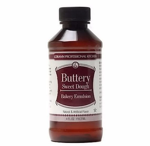 Buttery Sweet Dough baking & flavoring emulsion use to add a rich taste of creamy butter with a hint of citrus and vanilla..  This professional emulsion will not ‘bake-out’. Use 1 tsp of emulsion for 1 tsp of extract. This bottle is 4 oz.Â
