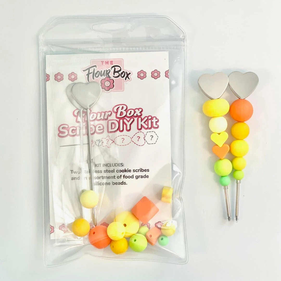 The Let’s Make Lemonade Cookie Scribe DIY Kit has everything you need to create TWO unique and custom scribe tools. Mix and Match your beads to make your own designs! Each kit includes 2 stainless steel heart scribes with a bead stopper and tip safety stopper. The kit also has 12 beads in assorted sizes and colors. Typically 4-6 beads fit on a scribe. The kit includes a few extra beads to make mixing and matching super fun, so you may have 1 or 2 beads leftover. Keep them so you can remix your scribes to keep your cookie tools fresh and fun! Kit also includes instruction card. CLICK HERE to watch the tutorial and learn how to make your own scribes!