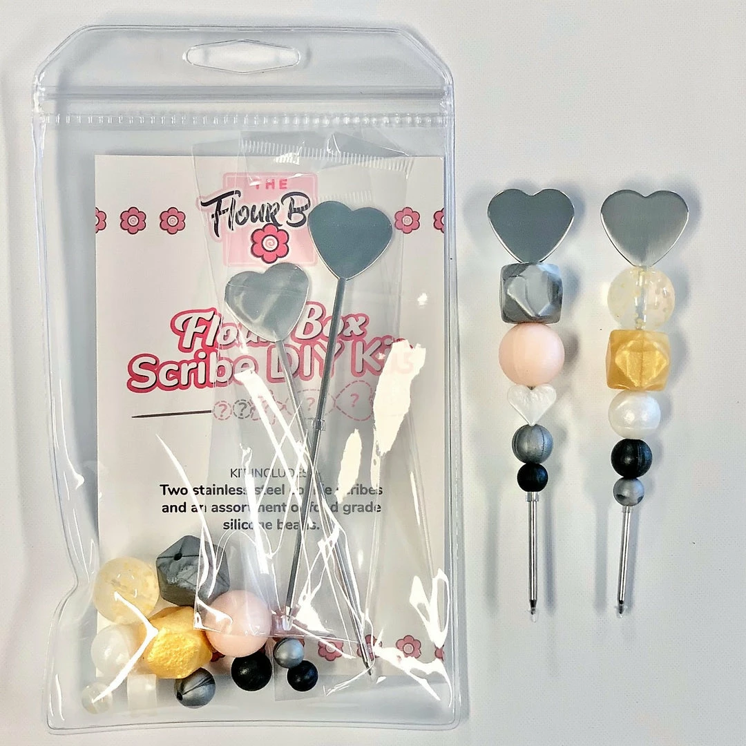 The Sparkle and Shine Cookie Scribe DIY Kit has everything you need to create TWO unique and custom scribe tools. Mix and Match your beads to make your own designs! Each kit includes 2 stainless steel heart scribes with a bead stopper and tip safety stopper. The kit also has 12 beads in assorted sizes and colors. Typically 4-6 beads fit on a scribe. The kit includes a few extra beads to make mixing and matching super fun, so you may have 1 or 2 beads leftover. Keep them so you can remix your scribes to keep your cookie tools fresh and fun! Kit also includes instruction card. CLICK HERE to watch the tutorial and learn how to make your own scribes!