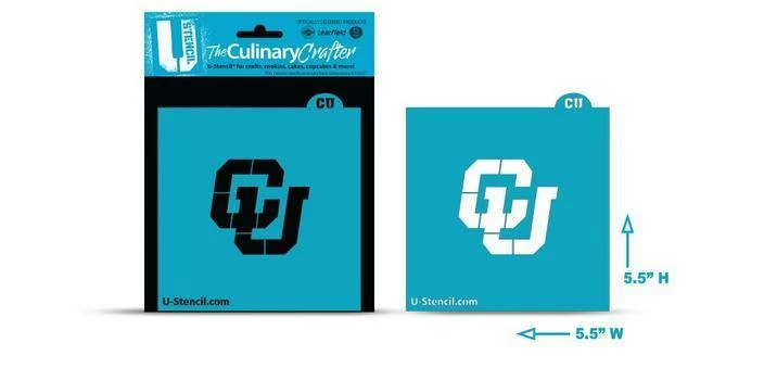 **Â FOR PERSONAL USE ONLY ** Colorado CU College Stencil. Overall stencil size is approximately 5.5″ x 5.5″. Black sections in image are the open sections. Stencils are clear food-safe plastic, washable and reusable. Made by U Stencil and are officially licensed products.