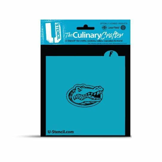 **Â FORÂ PERSONAL USE ONLY **Â Florida Gators Head College Stencil. Overall stencil size is approximately 5.5″ x 5.5″. Black sections in image are the open sections. Stencils are clear food-safe plastic, washable and reusable. Made by U Stencil and are officially licensed products.