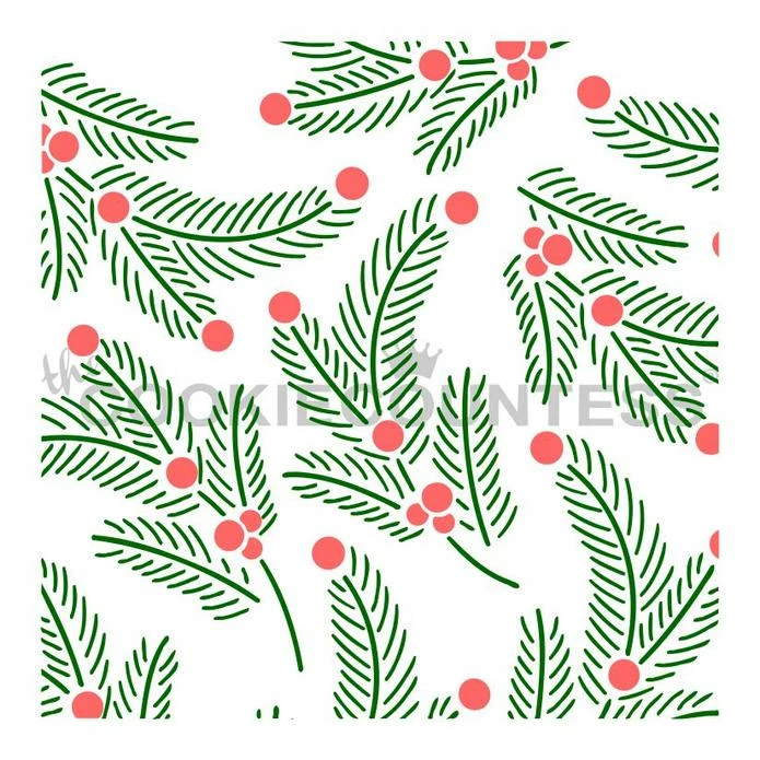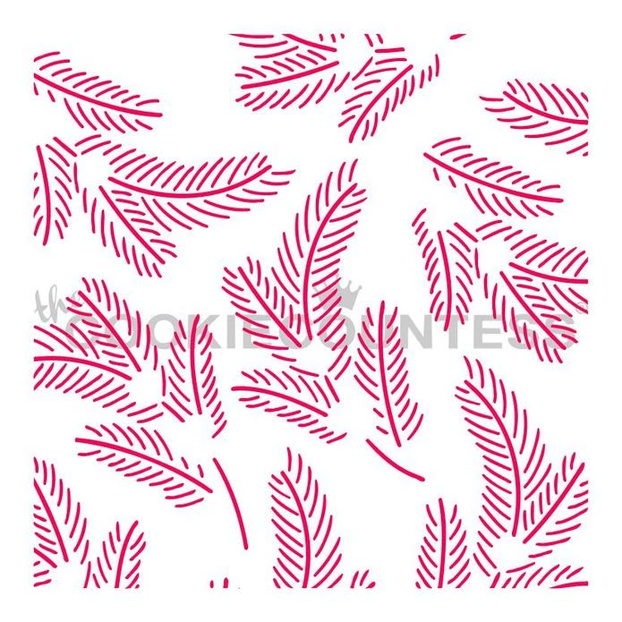 Foliage 2pc stencil. Overall stencil size approximately 5.5″ x 5.5″. PINK sections in image are the open sections. Stencils are 5mil Food Grade plastic, washable and reusable. Made by the Cookie Countess.
