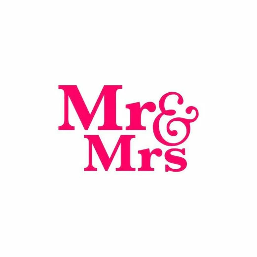 Mr. & Mrs. Handwriting stencil. Design size is 2.37 x 2.55″. Overall stencil size is approximately 5.5″ x 5.5″. PINK sections in image are the open sections. Stencils are 5mil Food Grade plastic, washable and reusable.Made by the Cookie Countess.