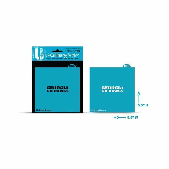 ** FOR PERSONAL USE ONLY ** Georgia GO DAWGS College Stencil. Overall stencil size is approximately 5.5″ x 5.5″. Black sections in image are the open sections. Stencils are clear food-safe plastic, washable and reusable. Made by U Stencil and are officially licensed products.