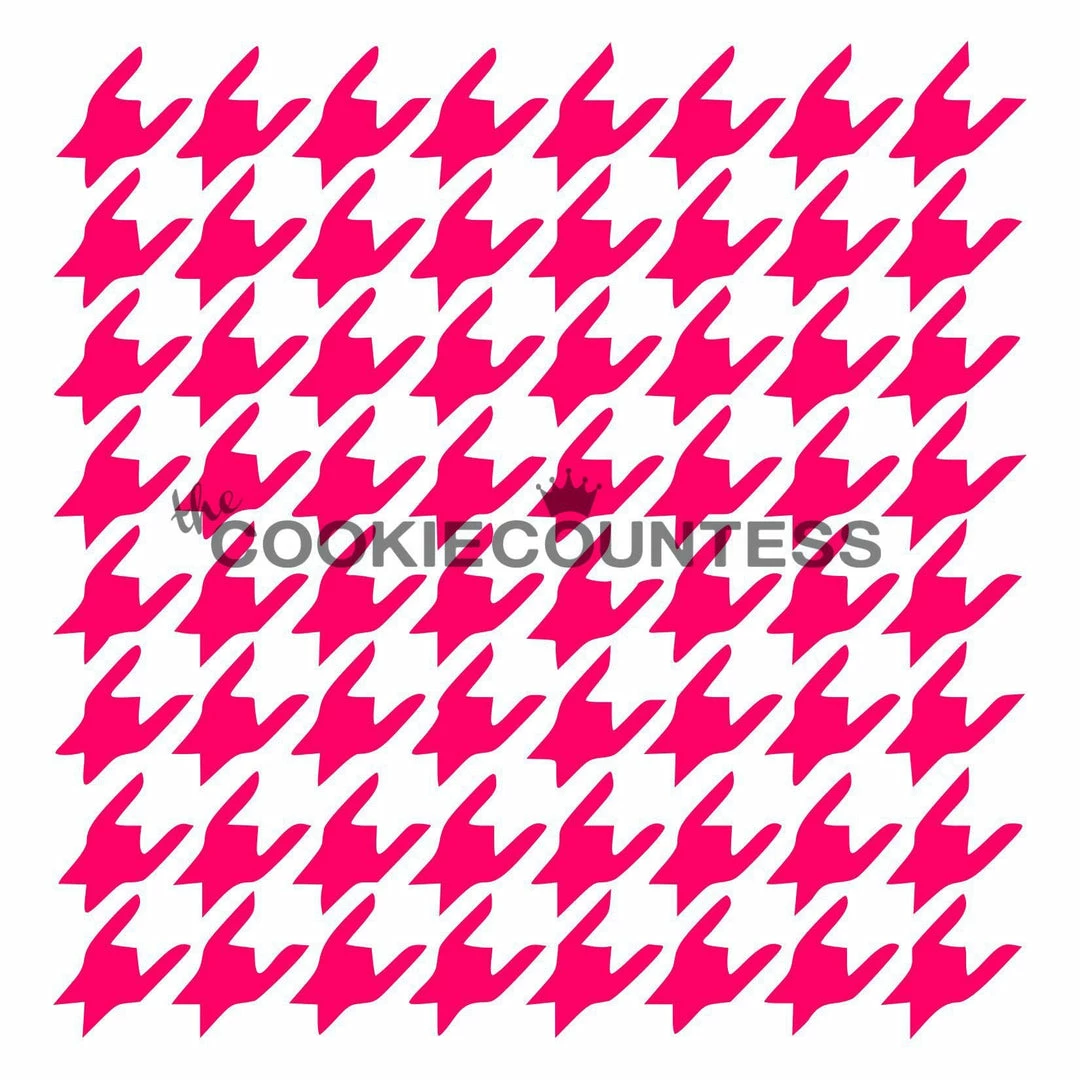 Houndstooth stencil. Overall stencil size is approximately 5.5″ x 5.5″. PINK sections in image are the open sections. Stencils are 5mil Food Grade plastic, washable and reusable. Made by the Cookie Countess.