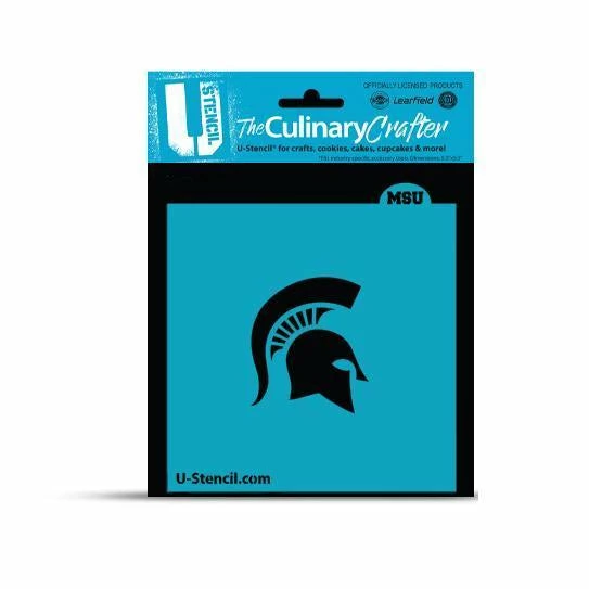 ** FOR PERSONAL USE ONLY ** Michigan State College Stencil. Overall stencil size is approximately 5.5″ x 5.5″. Black sections in image are the open sections. Stencils are clear food-safe plastic, washable and reusable. Made by U Stencil and are officially licensed products.