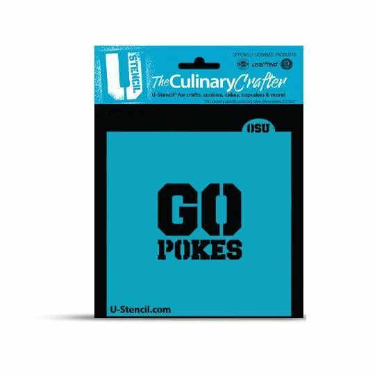 **Â FORÂ PERSONAL USE ONLY ** Oklahoma University GO POKES College Stencil. Overall stencil size is approximately 5.5″ x 5.5″. Black sections in image are the open sections. Stencils are clear food-safe plastic, washable and reusable. Made by U Stencil and are officially licensed products.