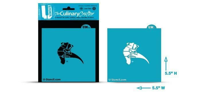 **Â FORÂ PERSONAL USE ONLY **Â University of Miami Sebastian College Stencil. Overall stencil size is approximately 5.5″ x 5.5″. Black sections in image are the open sections. Stencils are clear food-safe plastic, washable and reusable. Made by U Stencil and are officially licensed products.