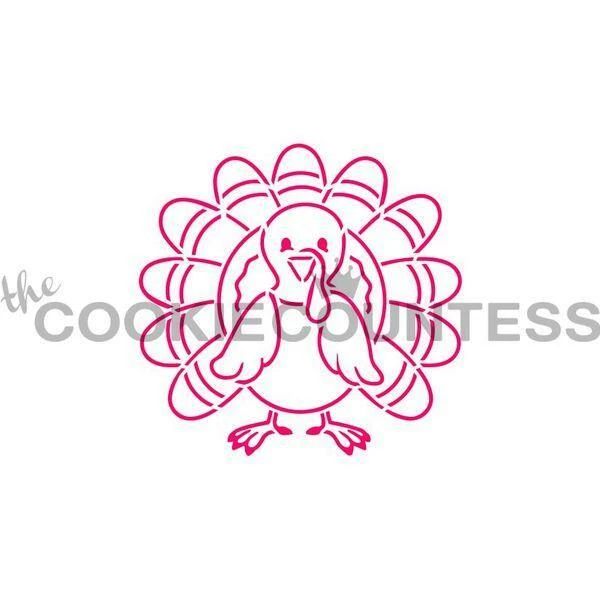Turkey Paint Your Own stencil. Overall stencil size is approximately 5.5″ x 5.5″. PINK sections in image are the open sections. Stencils are 5mil Food Grade plastic, washable and reusable.Made by the Cookie Countess.