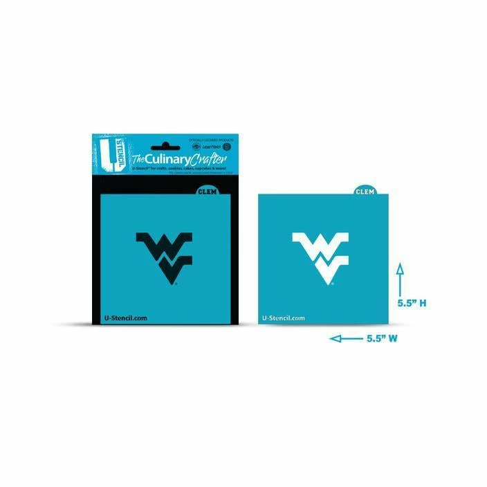 **Ā FORĀ PERSONAL USE ONLY ** West VirginiaĀ College Stencil. Overall stencil size is approximately 5.5″ x 5.5″. Black sections in image are the open sections. Stencils are clear food-safe plastic, washable and reusable. Made by U Stencil and are officially licensed products.