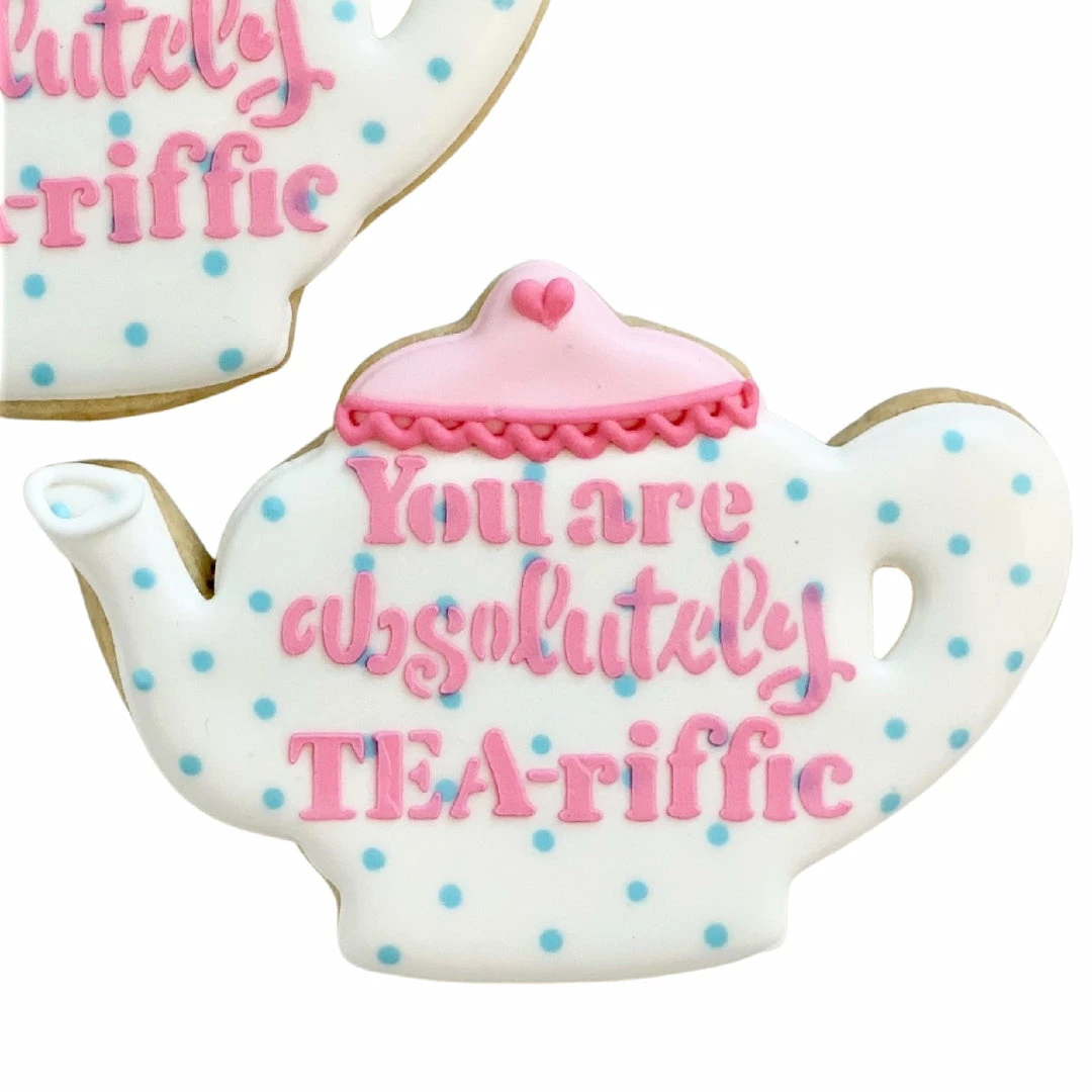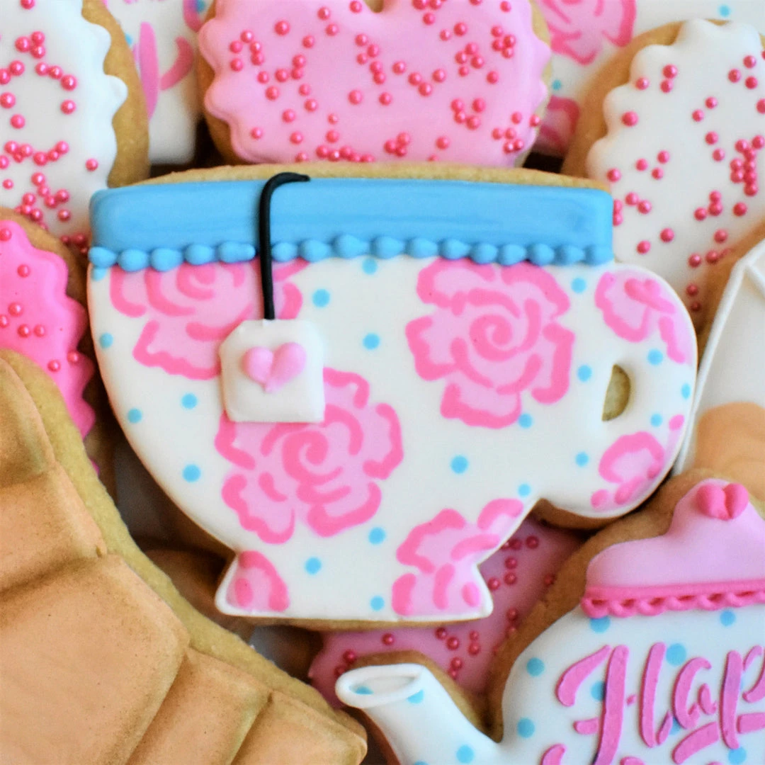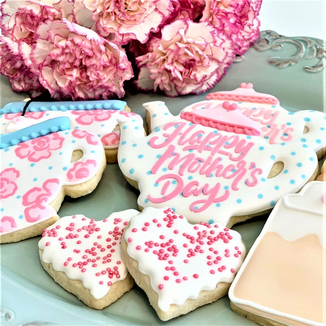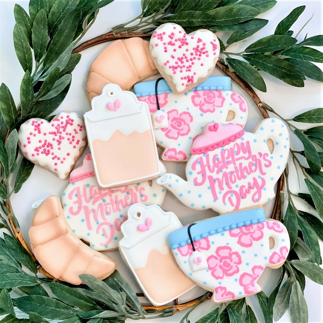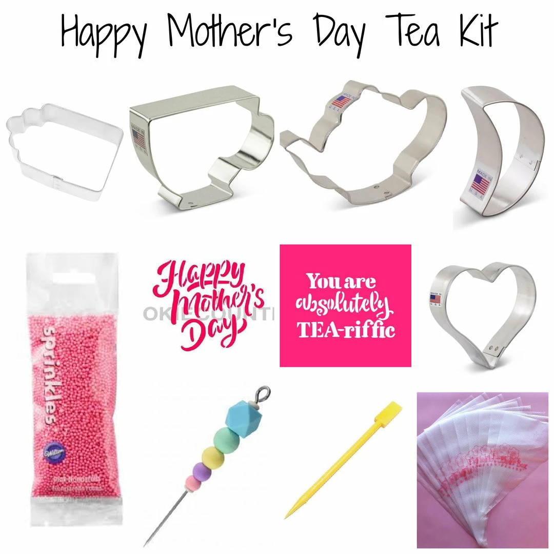 The Mother’s Day Tea Kit includes the Mother’s Day stencil. The cutters featured in the kit are: Teacup, Teapot, Teabag, Moon, and Mini Heart. Kit also includes the Beaded Scribe, Pink Nonpareils Pouch, a boo boo stick, and 10 tipless icing bags (5 10″ and 5 13″).