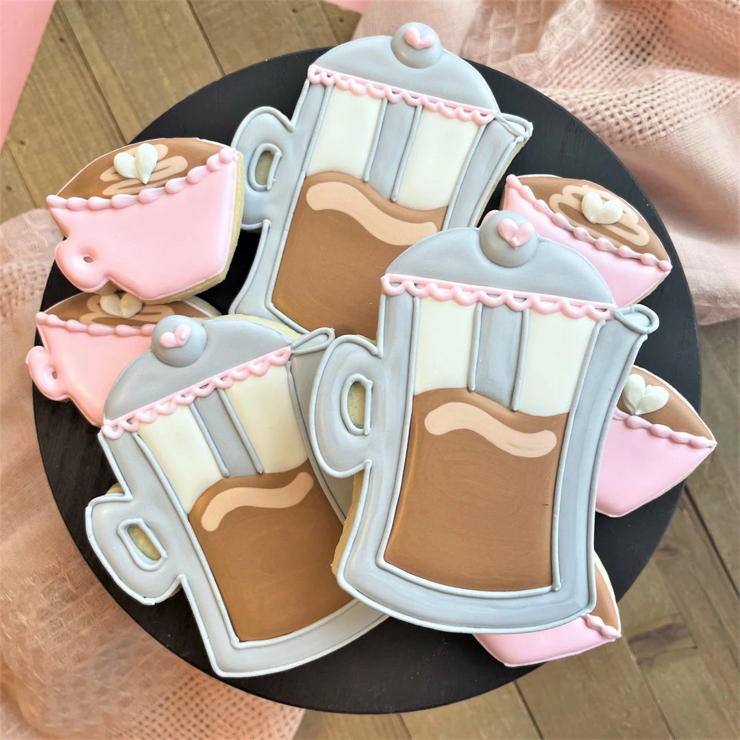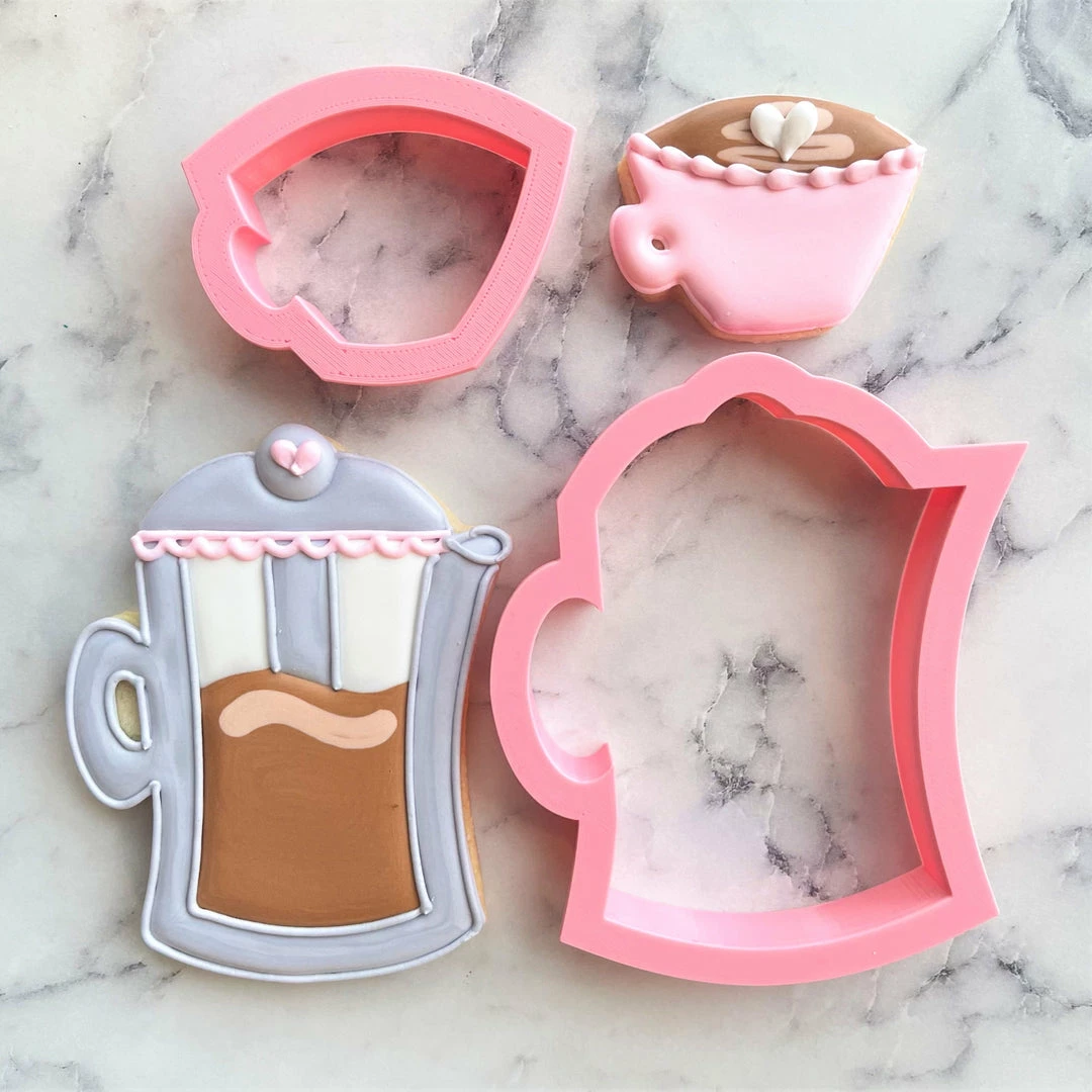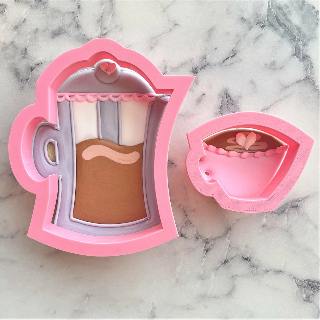 Just brew it -with this cute French Press with Mini Coffee Cup cookie cutter set designed by Anne at The Flour Box!