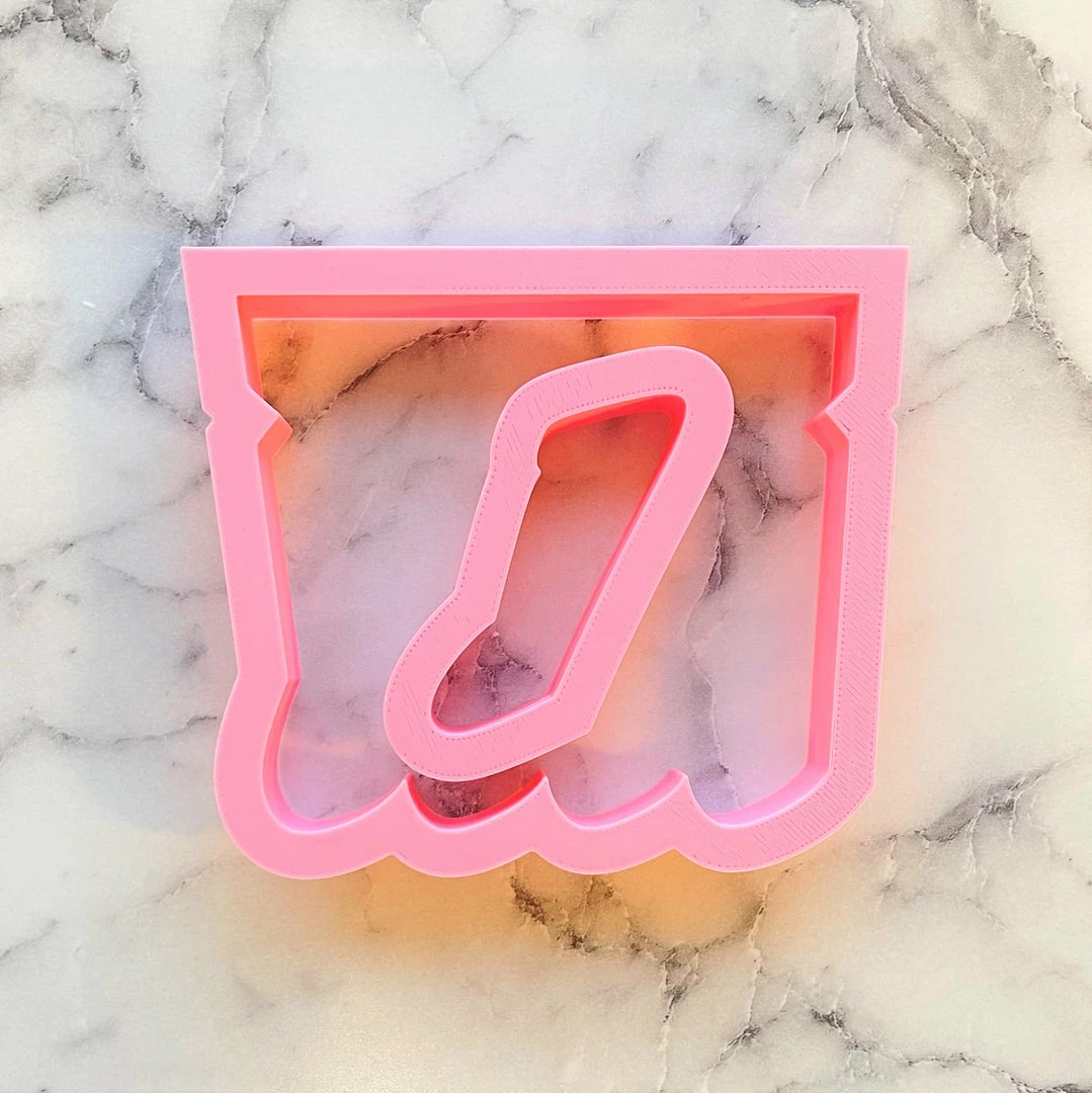 Cutter Size: Stocking on Mantle measures 3″ tall x 3.50″ wide and Mini Stocking measures 2.25″ tall x 0.75″ wide.