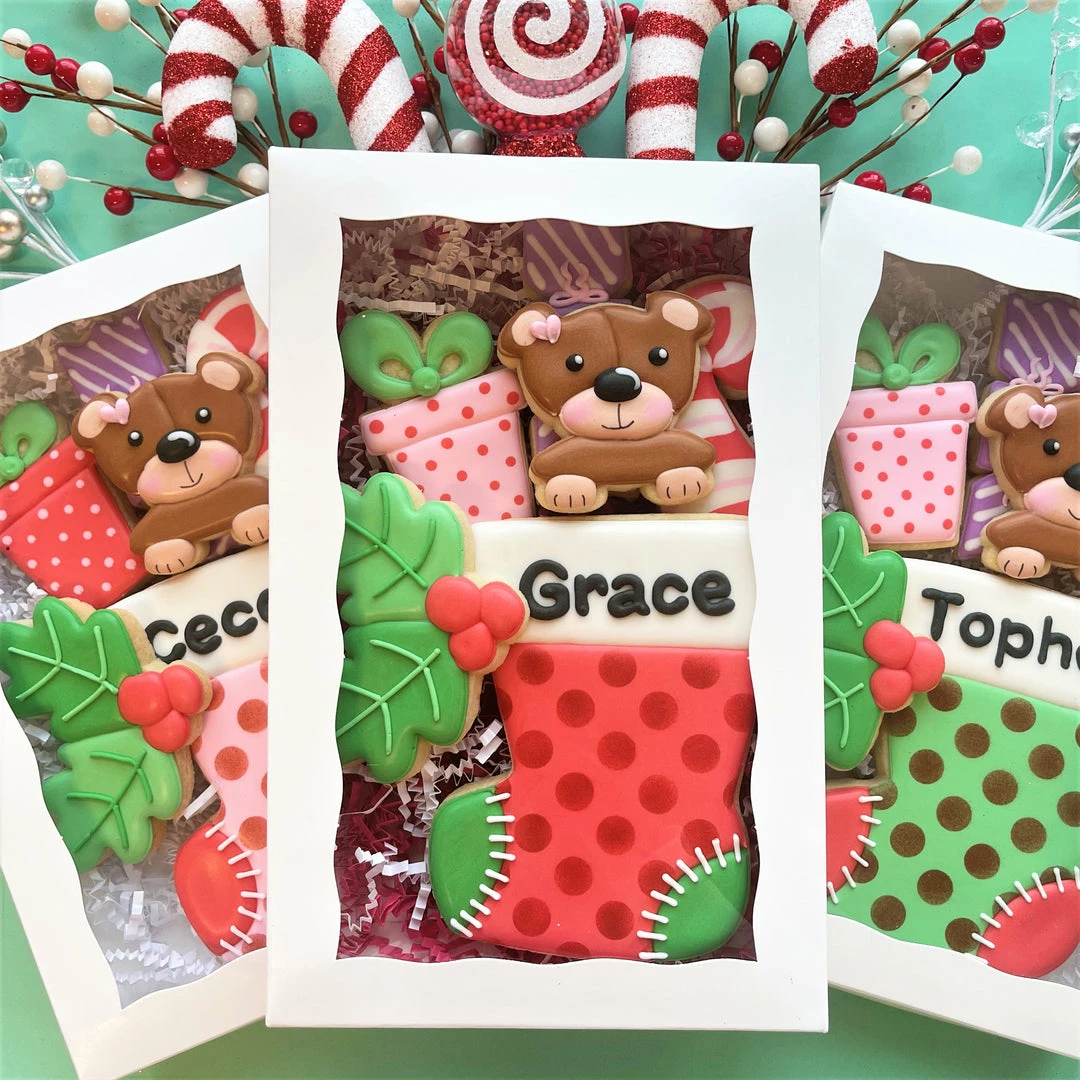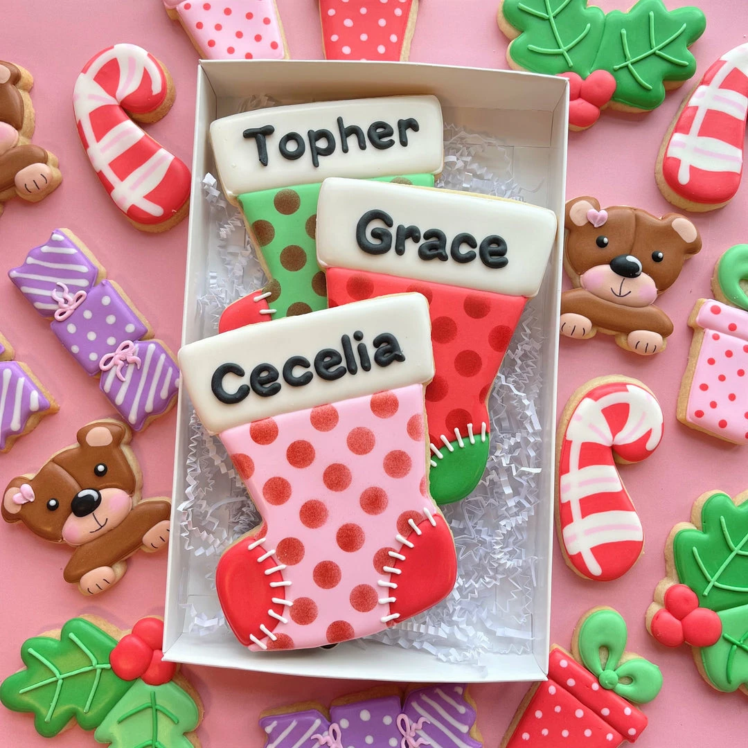 Fill the Christmas stockings to the top with adorable cookies! The Stocking Stuffers cookie cutter set includes 6 cutters designed by Anne at The Flour Box! Save 10% on the cutters when you purchase this set!