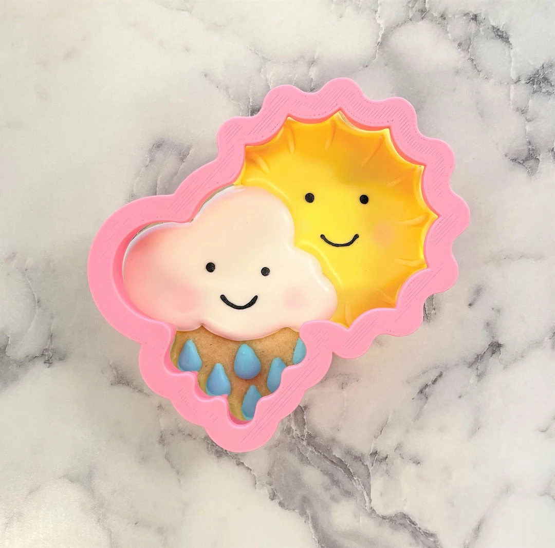 Spring showers bring summer flowers with this cute sun and cloud cookie cutter is designed by Anne at The Flour Box!