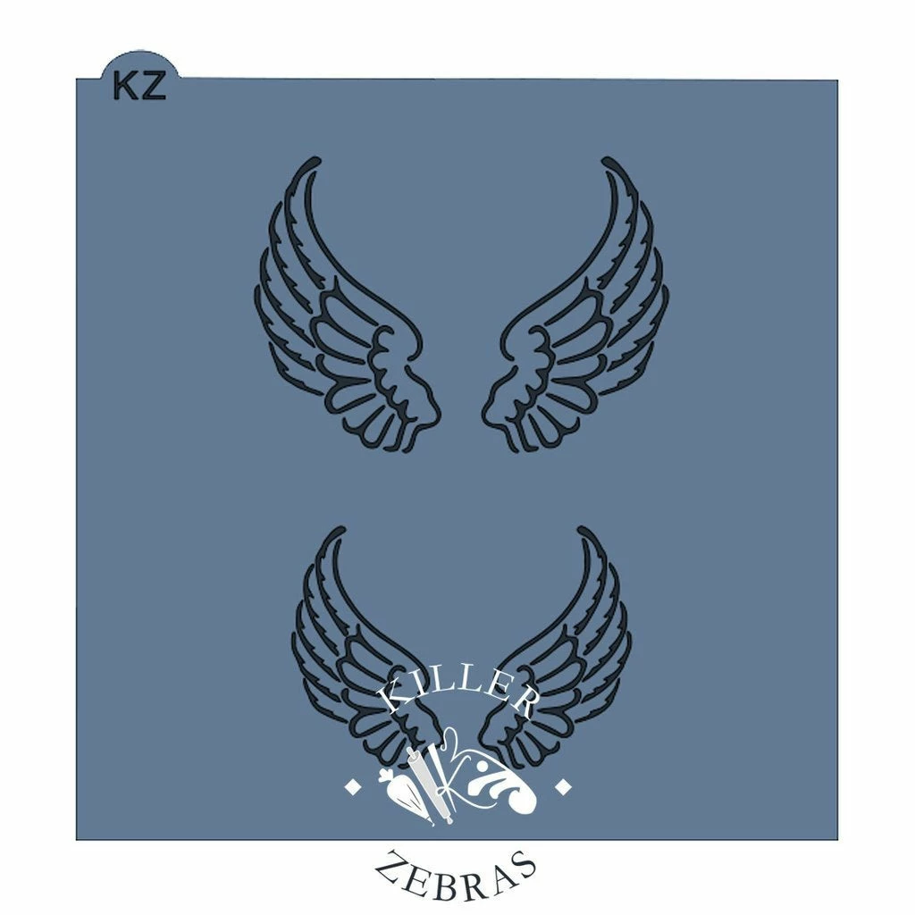 Angel Wings KZ stencil.  Use stencils to quickly and easily enhance the designs of your cookies!  All stencils are made from reusable food grade plastic that is 7.5 mil thick. Stencil measures 5.5″ x 5.5″.  Hand wash gently with soap and water. Lay flat to dry. Made by Killer Zebras.