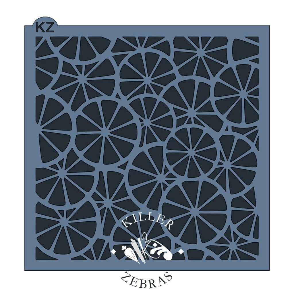 Citrus KZ stencil.  Use stencils to quickly and easily enhance the designs of your cookies!  All stencils are made from reusable food grade plastic that is 7.5 mil thick. Stencil measures 5.5″ x 5.5″.  Hand wash gently with soap and water. Lay flat to dry. Made by Killer Zebras.