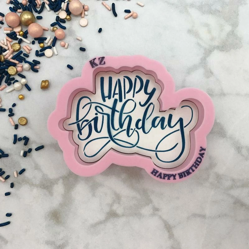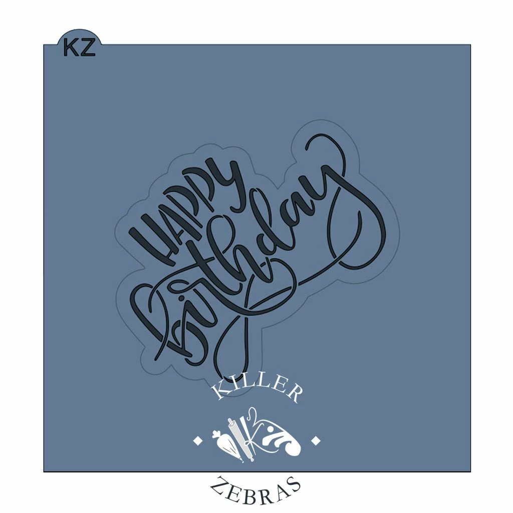 Happy Birthday KZ cookie cutter and stencil set. Use cookie cutter with matching stencils to make decorating faster and easier! All stencils are made from reusable food grade plastic that is 7.5 mil thick, and measures 5.5“w x 5.5″h. Cutter is made from food safe PLA plastic, and measures approximately 3″ x 4″. Hand wash gently with soap and water. Lay flat to dry. Made by Killer Zebras.