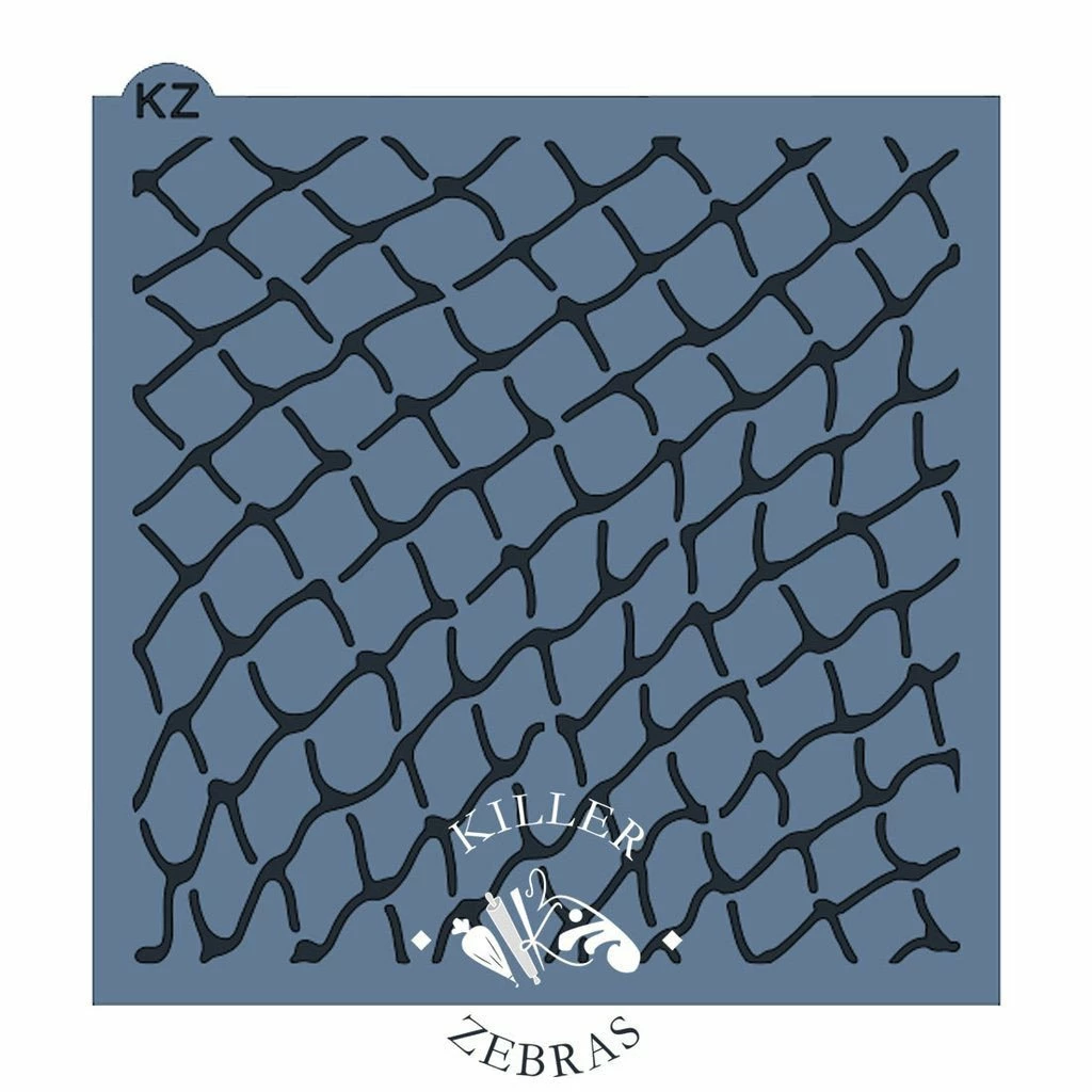 Fish Net KZ stencil.  Use stencils to quickly and easily enhance the designs of your cookies!  All stencils are made from reusable food grade plastic that is 7.5 mil thick. Stencil measures 5.5″ x 5.5″.  Hand wash gently with soap and water. Lay flat to dry. Made by Killer Zebras.