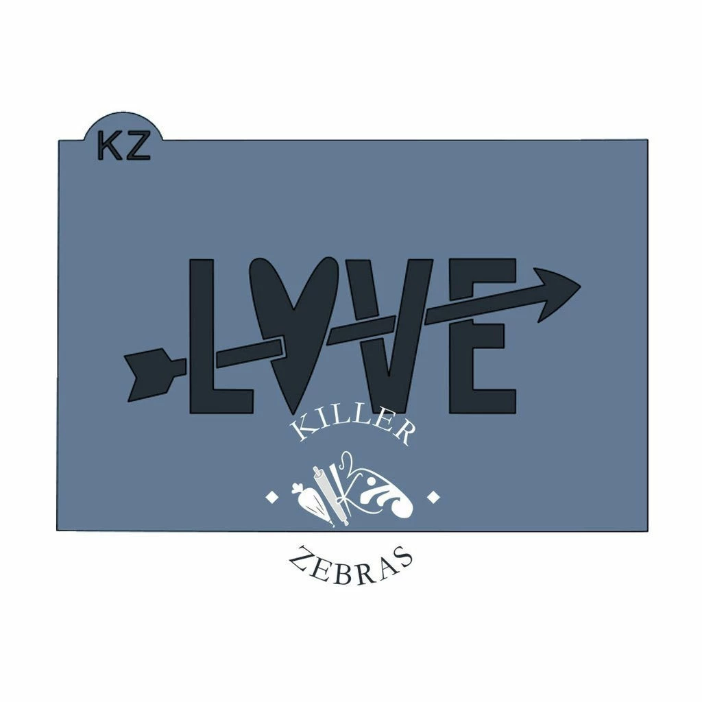 Love Arrow KZ stencil. Use stencils to quickly and easily enhance the designs of your cookies! All stencils are made from reusable food grade plastic that is 7.5 mil thick. Stencil is 4 1/4″w x 2 3/4″h. Writing measure approximately 3 1/4″ wide. Hand wash gently with soap and water. Lay flat to dry. Made by Killer Zebras.