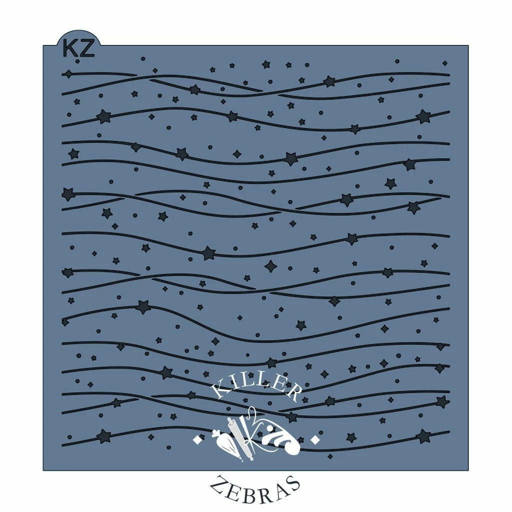 Milky Way KZ stencil. Use stencils to quickly and easily enhance the designs of your cookies! All stencils are made from reusable food grade plastic that is 7.5 mil thick. Stencil measures 5.5″ x 5.5″. Hand wash gently with soap and water. Lay flat to dry. Made by Killer Zebras.