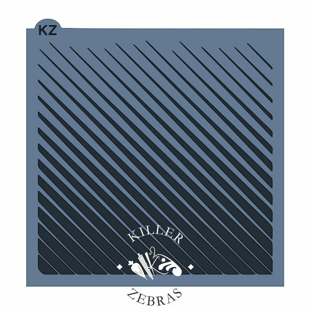 Ombre Stripes KZ stencil.  Use stencils to quickly and easily enhance the designs of your cookies!  All stencils are made from reusable food grade plastic that is 7.5 mil thick. Stencil measures 5.5″ x 5.5″.  Hand wash gently with soap and water. Lay flat to dry. Made by Killer Zebras.