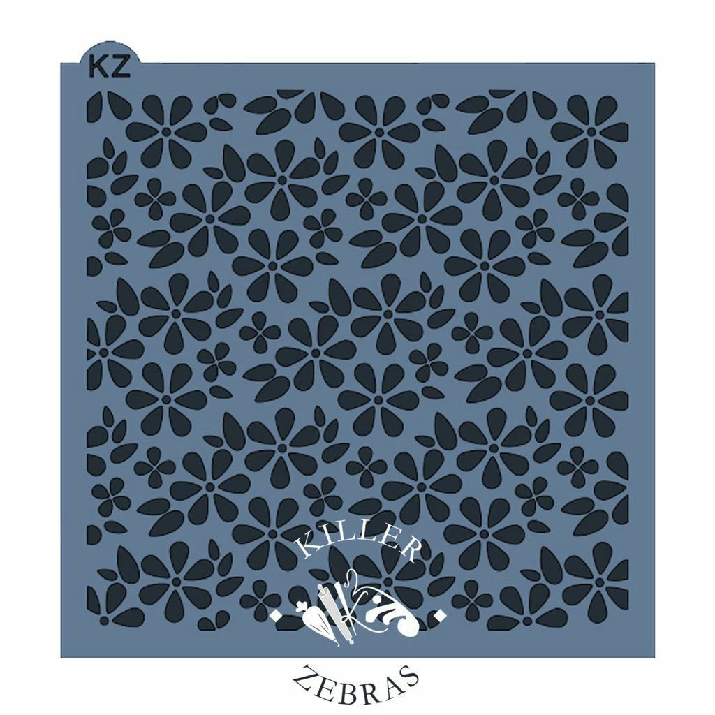 Spring Flowers KZ stencil.  Use stencils to quickly and easily enhance the designs of your cookies!  All stencils are made from reusable food grade plastic that is 7.5 mil thick. Stencil measures 5.5″ x 5.5″.  Hand wash gently with soap and water. Lay flat to dry. Made by Killer Zebras.