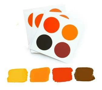 Have fun making a edible art! Edible paint in 4 colors (colors appear darker then final result) – golden yellow, burnt orange, warm red, and rich brown. Palettes come 12 to a pouch. Leave in pouch until time to use. 2 year shelf life. Avoid moisture until it’s time to use. Each palette is 3.25” x 3.25”, color circles are 1.5”.