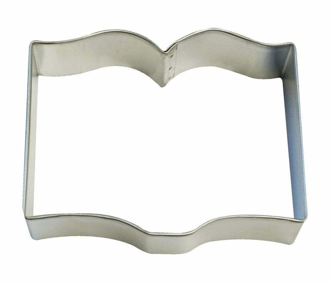 Tinplated Steel Book Cookie Cutter. Hand wash and dry thoroughly before storing. Size 3.5″.
