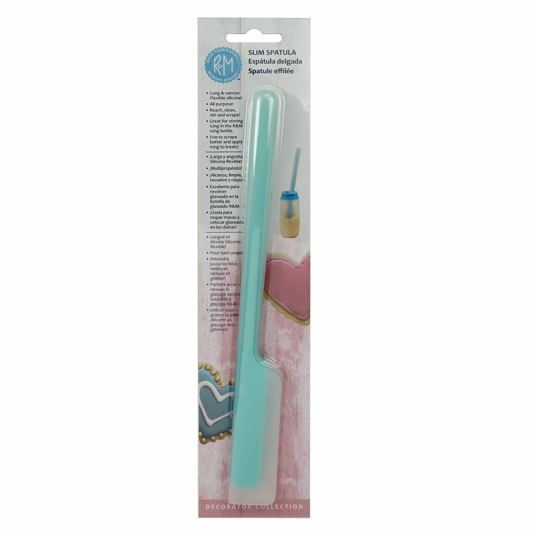 Silicone and Plastic Slim Spatula 9.5″. Use to scrape batter and apply icing to treats! Temperature Safe to 200-250 degrees. Dishwasher Safe.