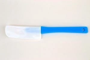 Plastic Mini Blue Spatula. Hand wash and dry thoroughly before storing. Size 6″.