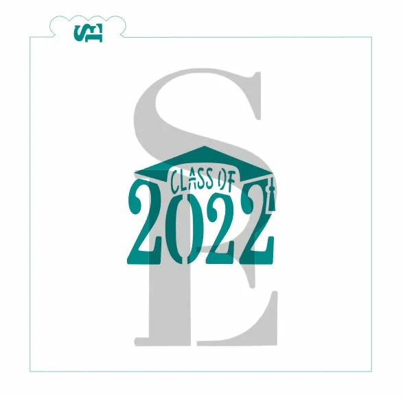 Class of 2022 SE stencil. Design sizes are approximately  2.5″ x 3.0″. Overall size is 5.75″ x 5.75″. Stencils are Food Grade plastic, washable and reusable. Handmade by Stencil Expressions in the USA. Stencils for cookies, cakes, culinary & more.