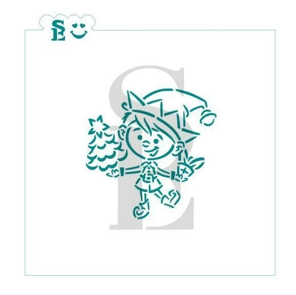Elf Paint Your Own SE stencil. Design sizes are approximately 3″ and 3″. Overall size is 5.75″ x 5.75″. Stencils are Food Grade plastic, washable and reusable. Handmade by Stencil Expressions in the USA. Stencils for cookies, cakes, culinary & more.