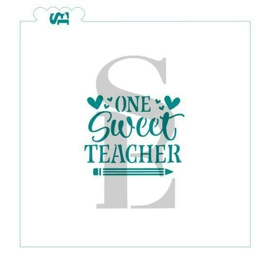 One Sweet Teacher SE stencil. Design sizes are approximately 2.5″ x 3.0″. Overall size is 5.75″ x 5.75″. Stencils are Food Grade plastic, washable and reusable. Handmade by Stencil Expressions in the USA. Stencils for cookies, cakes, culinary & more.