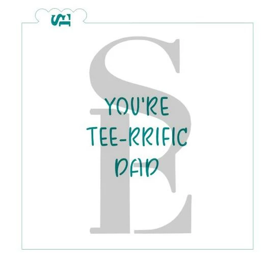 You’re Tee-rrific Dad SE stencil. This stencils works well with the 3.5″ Square, LilaLoa Plaque, Square Plaque, Photo Plaque, Victorian Plaque, or the Rectangle cookie cutters. Design sizes are approximately 2.25″ x 2.75″. Overall size is 5.75″ x 5.75″. Stencils are Food Grade plastic, washable and reusable. Handmade by Stencil Expressions in the USA. Stencils for cookies, cakes, culinary & more.