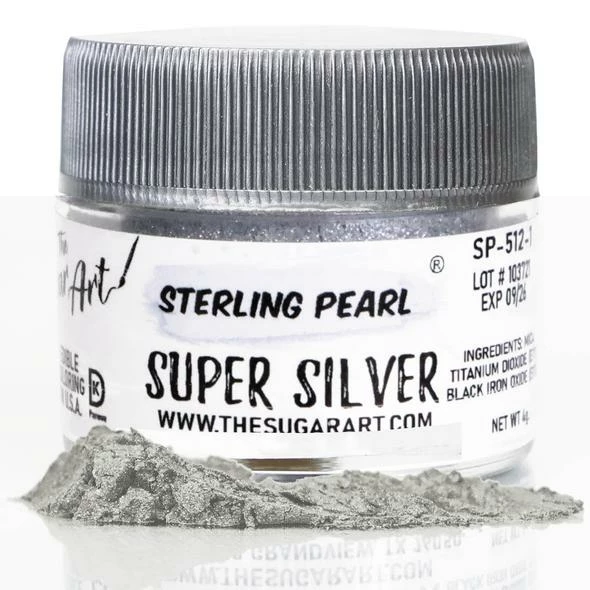 Edible Super Silver Luster Dust! Dry the luster dust on cookies, cakes, chocolate and more for a more gorgeous shine. Also mix the luxurious luster dust with extracts and spirits to create an edible metallic paint.