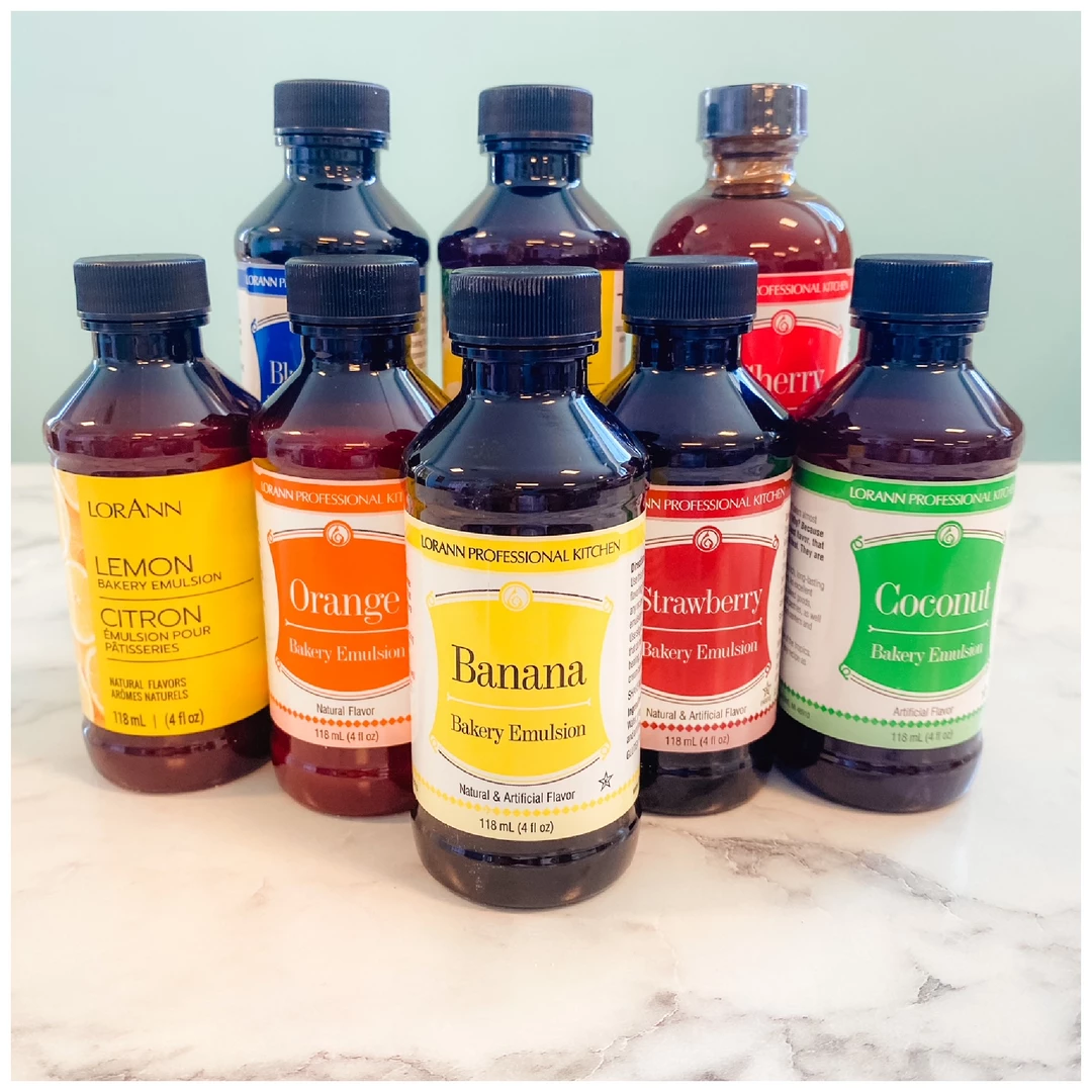 This assortment includes fun, fruity flavors to bring sweet delight to every baker. Add bright, citrus flavor to your cookies, icing and more. Water-based Baking Emulsions will give your recipes more impact than an extract with flavor that won’t bake-out.  1 teaspoon baking extract = 1 teaspoon emulsion