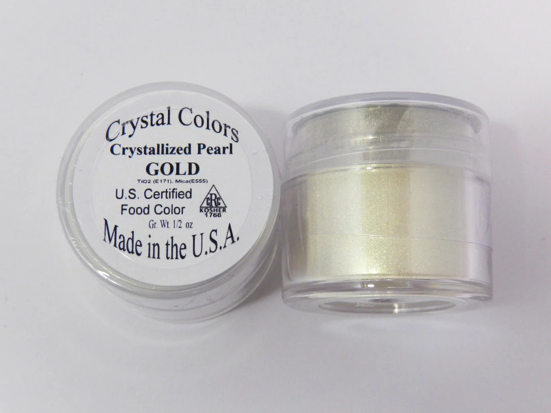 Add beautiful shine to your cookies with Crystal Color Dust. All Colors are FDA U.S. Certified Food Colors, are Made in the U.S.A., and have a gross weight of 1/2 ounce per bottle. Colors can be mixed with alcohol, water or lemon extract and painted onto royal icing. Color can also be used in an air brush.