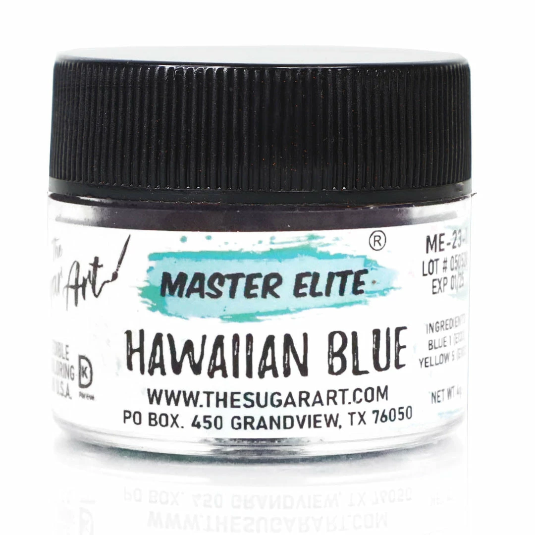 This vibrant Hawaiian Blue (teal) food color will make your head spin! The edible Master Elites are intended to color royal icing, fondant, buttercream, macaron batter, cake batter and more. Keep in mind, Master Elites are not fat soluble and can not color chocolate.