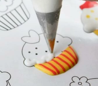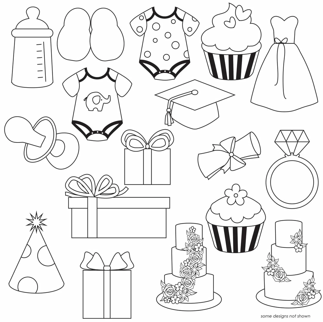 Autumn Carpenter’s artwork is duplicated onto 12 high quality food-grade sheets so that you can make your own adorable edible pieces to accent cakes, cookies, and cupcakes. ThisĀ CelebrationsĀ set includes images of: present, bottle, feet, onesie, cupcake, wedding gown, wedding cake, pacifier, gift, graduation cap, diamond ring, diploma, party hat. These can be used with royal icing, chocolate, or rolled fondant. Pipe royal icing or chocolate directly onto the sheets. Allow the pieces to dry overnight (chocolate dries in a few minutes), then easily remove the pieces from the pattern sheets. Step out instructions included with each set. Each sheet contains multiples of the same design. Sheets are hole punched for easy storage in a three-ring binder. Royal icing recipe included inside.
