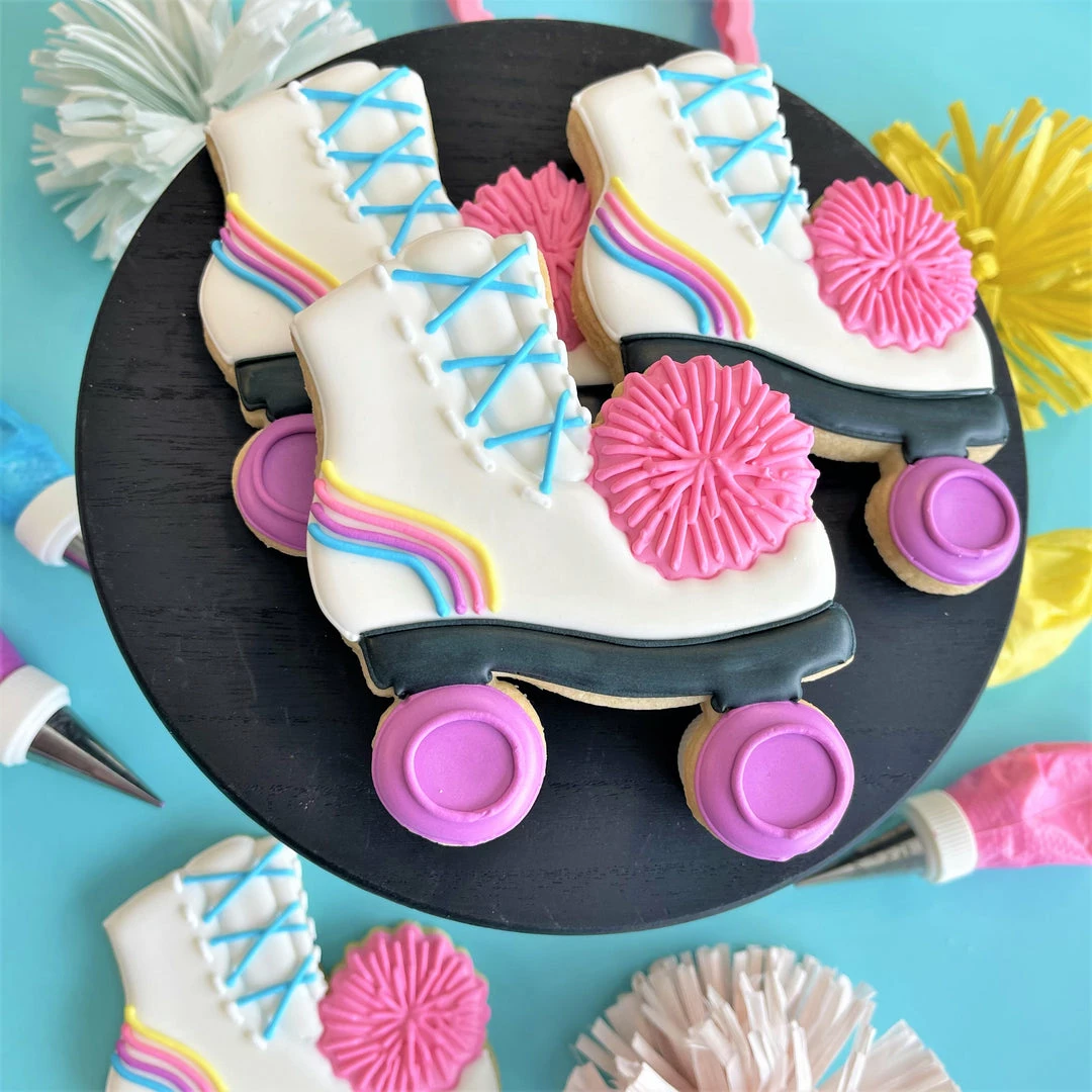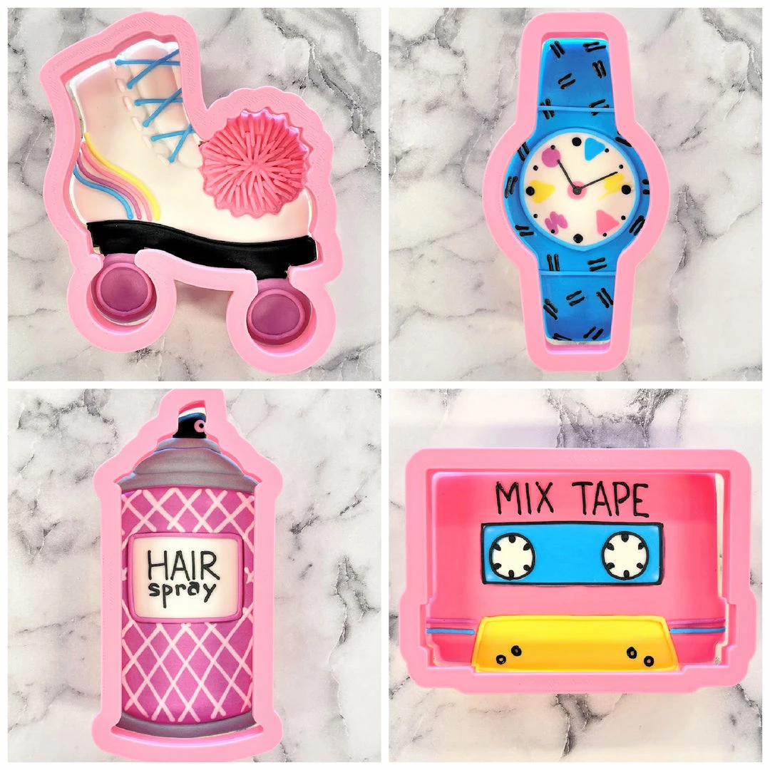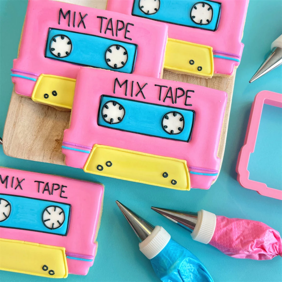 This class is going to be RAD! Join Anne Yorks of The Flour Box for an online class and decorate 4 Totally 80s designs with royal icing: Mix Tape, Roller Skate, Hair Spray, and Cool Watch.  Purchase the recording of the class. CLICK HERE TO PURCHASE THE CLASS RECORDING. The cost for the class recording is $20. Get ready for the class with this kit! In this class you will learn how to create each design step-by-step using a piping and flooding decorating method. We will explore how to use 20-sec icing. There are tons of wet-on-wet techniques also featured in this class. And you’ll get practice transferring a template to the cookie! Class includes a detailed, full-color prep guide with step-by-step photos and instructions for each project, recording of class, and cookie and icing recipes. *Prep guide will be emailed to you after you register for the class.Â