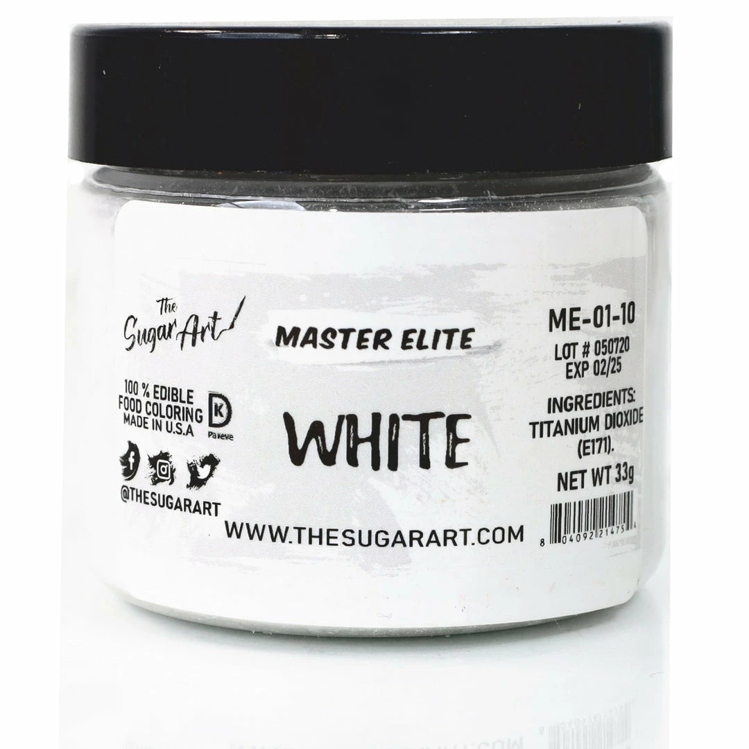This White food color you can achieve the brightest white. The edible Master Elites are intended to color royal icing, fondant, buttercream, macaron batter, cake batter and more. Keep in mind, Master Elites are not fat soluble and can not color chocolate.