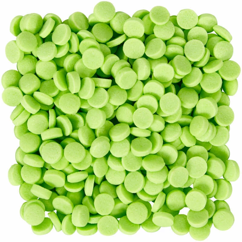 Any sweet treat is more fun with a dash of sprinkles. Light Green confetti come in a convenient small pouch and can be used on cookies, cupcakes, candy and even ice cream. Certified kosher. Weight: 1 oz.